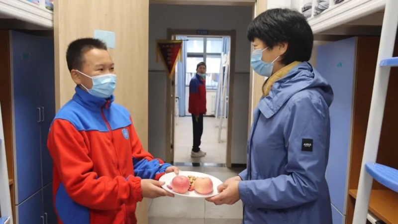 校领导带头走进学生宿舍分发零食,传递温暖的同时也加深了师生情谊......