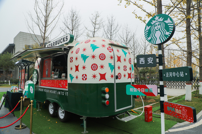星巴克移动咖啡车今日抵达泾河新城站。