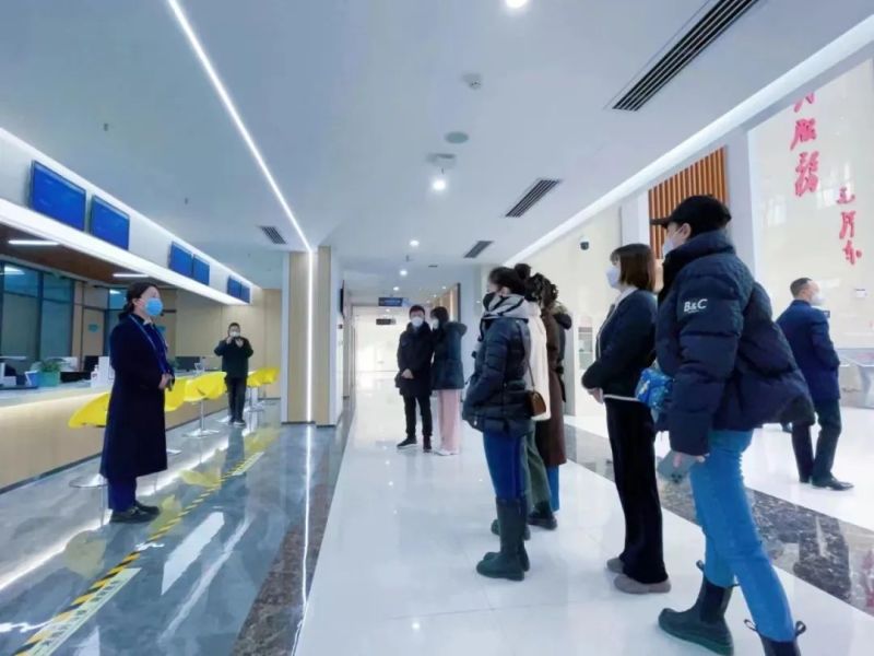 在西咸新区政务服务(泾河)中心大厅,采风团参观了大厅各个办公区域及窗口,重点了解了金融服务专区、企业开办专区、水电气暖综合报建专区及 AI 人工智能监控设施相关情况。“大厅以环通型设计为主,共设有三层业务办理区,主要分为咨询区、受理区、自助区、等候区、填表区和商务区六大功能区。大厅目前共设36个窗口,可办理1203项行政许可及公共服务事项。”西咸新区政务服务(泾河)中心工作人员向采风团介绍。