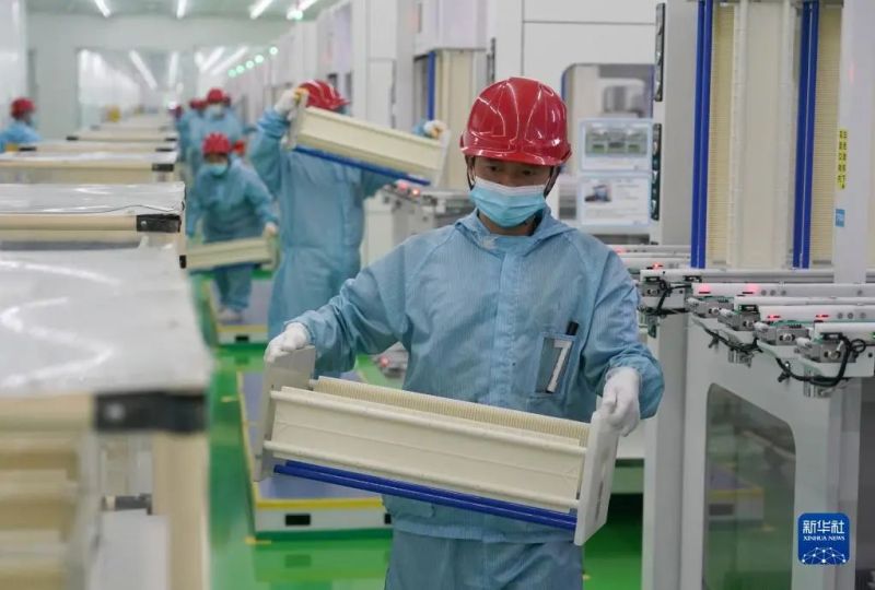 ■ 2022年9月28日,工人在隆基绿能15GW高效单晶电池项目车间内进行生产。新华社记者 邵瑞 摄