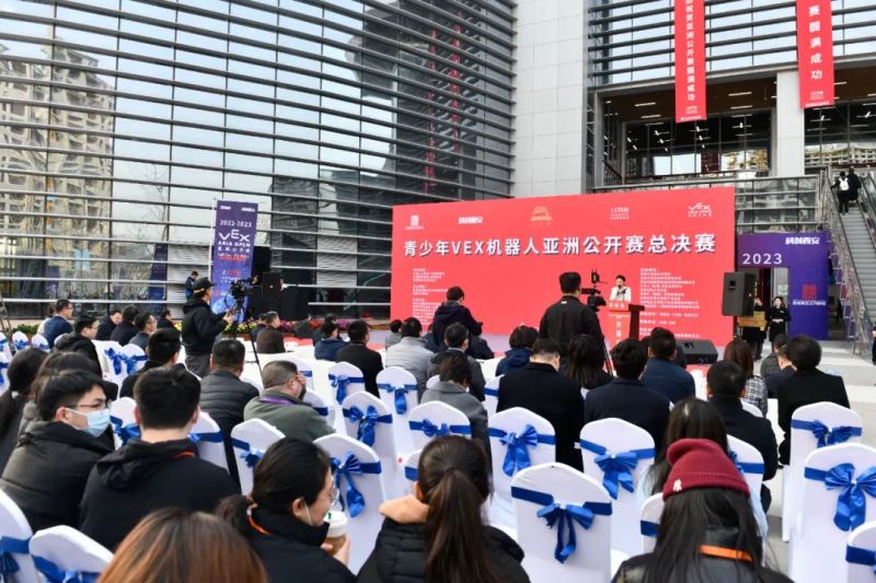 当日,2022-2023赛季VEX机器人亚洲公开赛总决赛在这里隆重开赛。西咸新区党工委书记杨仁华出席开幕式并宣布大赛启动。陕西省科学技术协会常务副主席李肇娥与爱因斯坦联盟中国区主席、VEX亚洲公开赛组委会秘书长施宏伟一起为泾河新城授永久会址荣誉牌,标志着“VEX机器人亚洲公开赛”永久会址正式落户泾河新城。西咸新区党工委委员,泾河新城党委书记、管委会主任张宏伟出席。