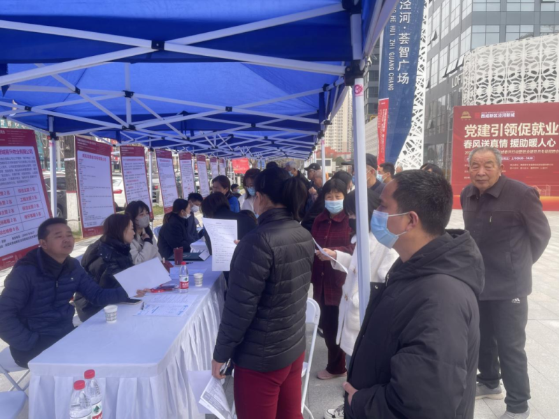 3月17日,泾河新城2023年“党建引领促就业 凝心聚力惠民生”春风行动暨就业援助月系列招聘活动最后一场——科技服务专场在崇文佳苑社区附近的泾河荟智广场举行。