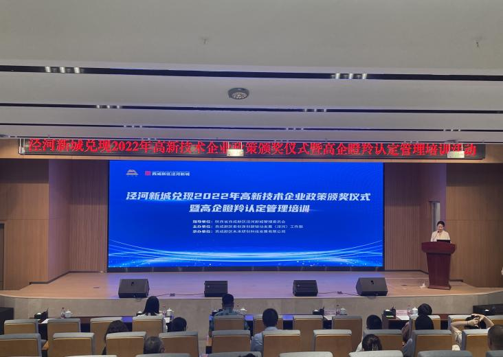 2022年高新技术企业政策兑现仪式暨2023年高企瞪羚认定管理培训活动在泾河新城举行