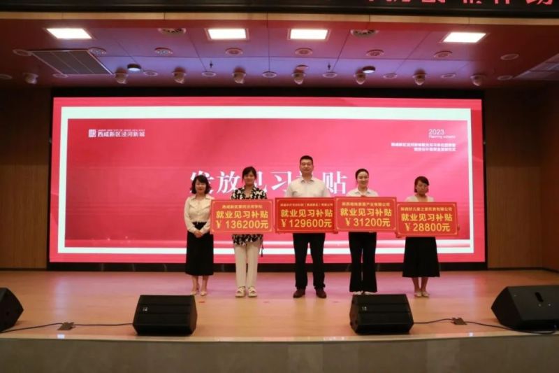 在8月3日举行的泾河新城就业见习单位授牌暨就创业补助资金发放仪式上,泾河新城组织和人力资源部为5家新申建的就业见习基地颁发“泾河新城就业见习单位”牌匾,并联同中国邮储银行股份有限公司西安分行、中国银行股份有限公司泾阳县支行为4家小微企业发放创业担保贷款;西咸新区人力资源服务中心相关负责人为4家就业见习单位代表发放见习补贴。