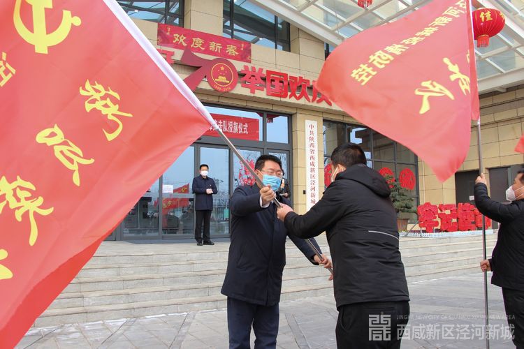 为充分发挥共产党员在抗击疫情中的先锋模范作用,泾河新城成立了4支疫情防控党员突击队,2月1日上午,泾河新城举行疫情防控党员先锋突击队授旗仪式。西咸新区党工委委员、泾河新城党委书记、管委会主任、新城疫情防控工作指挥部总指挥长张宏伟出席仪式。泾河新城党委委员、管委会副主任,疫情防控工作指挥部常务副指挥长任炳群主持仪式,泾河新城党委委员、管委会副主任、疫情防控工作指挥部副指挥长米海湖参加仪式。