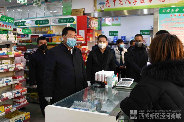 1月29日,西咸新区泾河新城新型冠状病毒感染的肺炎疫情防控工作指挥部总指挥长张宏伟深入辖区超市、药店、疫情隔离工作站等地检查生活、医疗必需品供应情况。泾河新城党委委员、管委会副主任米海湖、刘军一同检查。