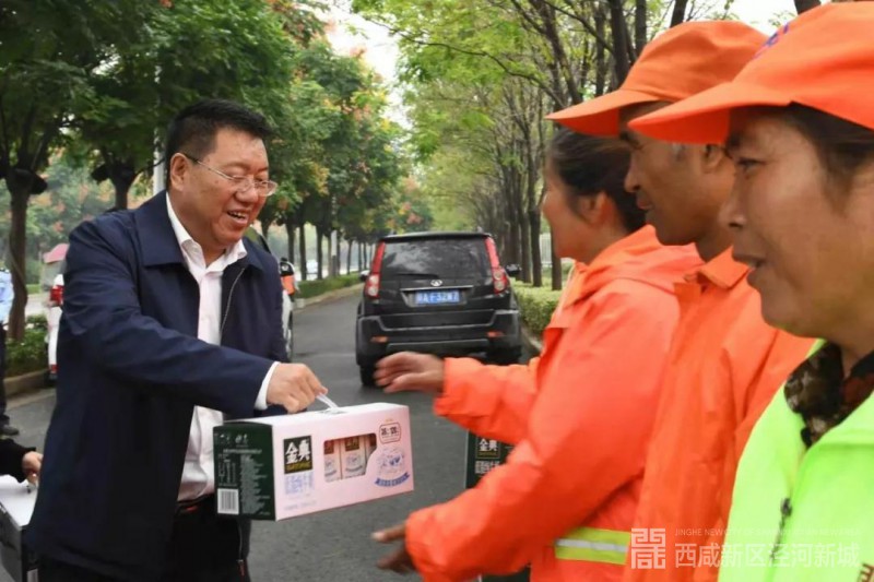 10月1日,西咸新区党工委委员、泾河新城党委书记、管委会主任张宏伟在泾河新城看望慰问执勤在一线的工作人员,通过他们向国庆期间所有新城值班人员送上问候和节日的祝福。