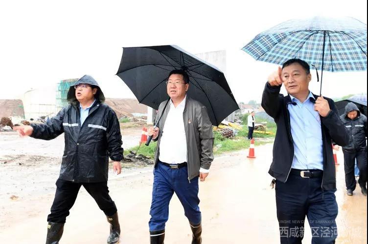 9月16日下午,西咸新区党工委委员、泾河新城党委书记、管委会主任张宏伟检查指导泾河新城应急防汛工作。泾河新城党委委员、管委会副主任刘军一同检查。