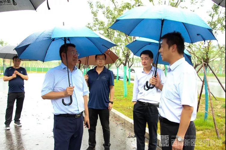7月18日下午,西咸新区党工委委员、泾河新城党委书记、管委会主任张宏伟前往沣泾大道施工现场检查新城防汛及地质灾害防治工作。泾河集团党委书记、董事长张鹏飞一同检查。