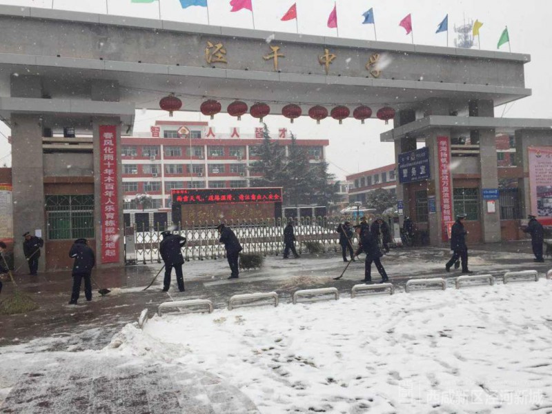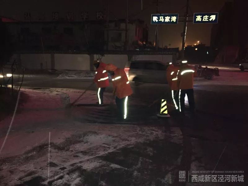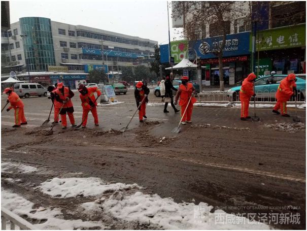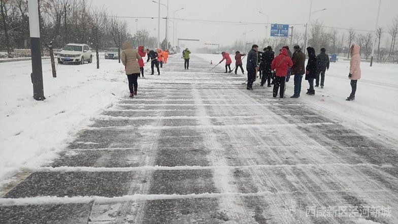 泾河新城全面发挥“路长制”作用,动员干部职工近千人扫除各路段积雪。