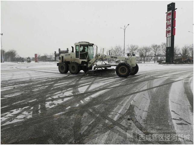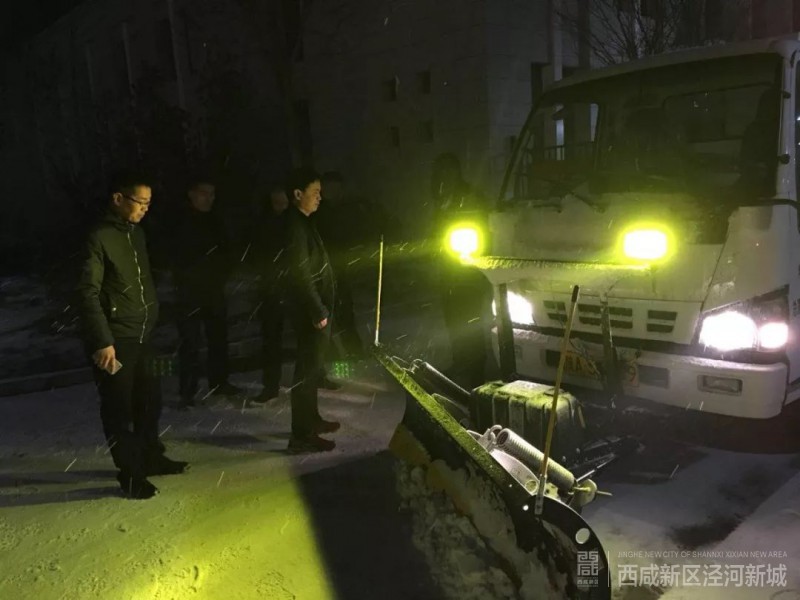降雪前,泾河新城城乡管理局在除雪物资储备、人员及铲雪车辆设备等除雪工作的各个环节做了充分的准备:一是储备大量融雪剂,除雪车3辆,融雪剂撒布机1辆,推雪板1600余把,铁锹800余把,联系多家社会机构的铲车、自卸车等大型机械28辆。二是要求交通运输和环卫工作人员、各物业公司、路段长保持24小时通讯畅通,降雪后立即启动应急预案,确保“民生”通道畅通。三是对客运车辆、货运企业、出租车公司、公交公司等做好安全检查,督导启动应急预案,确保安全生产、安全运输。四是在辖区625公里国省县乡道路做好撒布融雪剂、设置警示牌的准备,在涵洞、坡道、桥梁、拐角等危险路段设置安全监测点。五是确保垃圾压缩转运工作正常开展,及时掌握车辆设备动态,安全作业,装备防滑设施。六是组织各街镇备好除雪物资,做好应急预案,并组织公园广场做好广场防滑措施,组织绿化养护公司做好防冻、防压枝伤害。