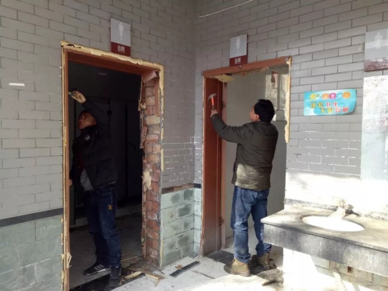 工作人员正在升级改造公厕