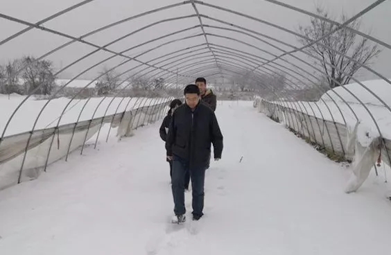 1月7日,西咸新区人社民政局局长肖建辉带队来泾河新城检查救灾救助及民政扶贫工作。在泾河新城人社民政局负责人张沁及相关工作人员的陪同下,检查组一行冒雪前往崇文镇坡底村实地查看了4处大棚倒塌灾情。