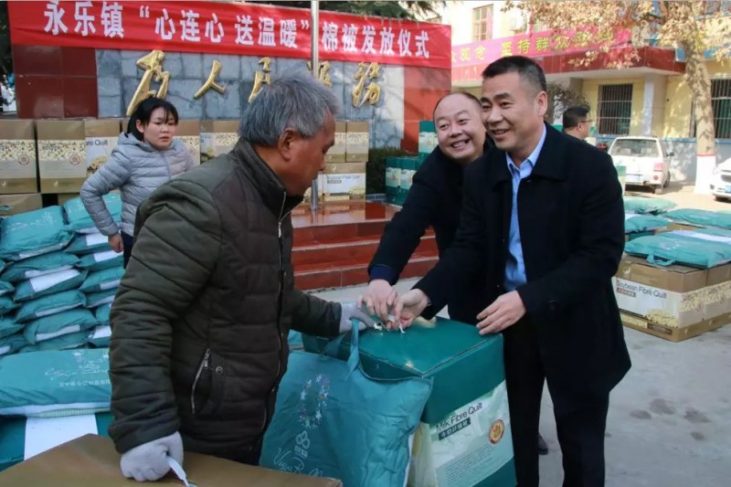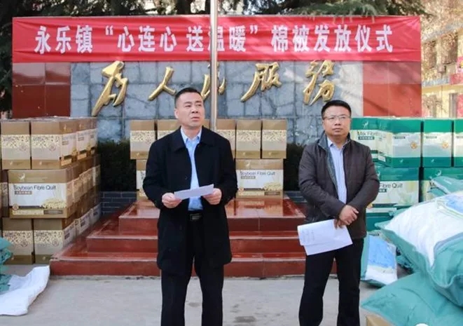 活动中,曹卫东镇长介绍了此次活动的意义及重要性,表明了永乐镇扶贫的力度与决心。房根平书记代表永乐镇党委、政府为贫困户代表发放越冬被褥、枕头,并作重要讲话。对贫困户代表,房根平既寄予关爱又提出殷切希望,他希望贫困户自强自立,不断激发脱贫内生动力,以帮扶为梯,受“智志”双扶,早日实现脱贫。对镇村帮扶干部,房根平表达了“三个感谢”,感谢基层干部直面困难,感谢帮扶干部在力所能及范围之外不遗余力的扶贫,感谢基层干部关注关心关爱贫困户。房根平表示,在脱贫攻坚路上,只有团结一致,时刻把群众放在心上,拧成一股绳,才能打赢脱贫攻坚战。