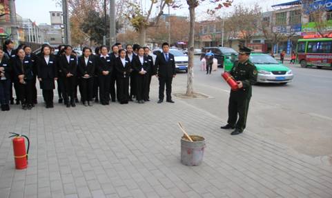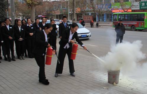 紧急疏散演练结束后,消防人员首先对所有灭火器进行了检查,以确保所有器材的安全使用,接着,消防员就消防水龙带和干粉灭火器的使用等进行了详尽的讲解和示范,使参演人员对灭火器的操作有所了解。