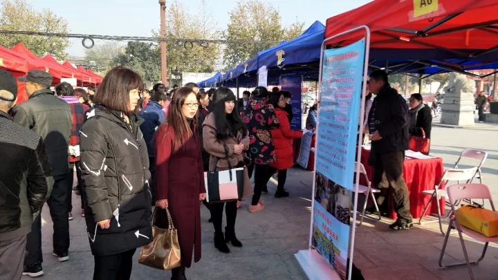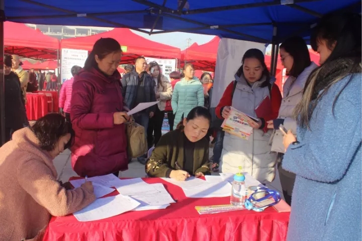 本次招聘会分别于11月28日、11月30日在泾河新城泾干街道泾干湖广场、高庄镇新庄村村委会举行,招聘对象主要为农村贫困劳动力及城乡普通劳动力。现场参会企业来自西安、咸阳、泾河新城共100多家,包括光明乳业、苏宁物流、华润万家、中国平安等知名企业,提供保洁、保安、收派员、文员等门槛低、易就业的基础性岗位约2000余个,招聘会当天共有7900余名求职者参加,现场达成用工意向856名。
