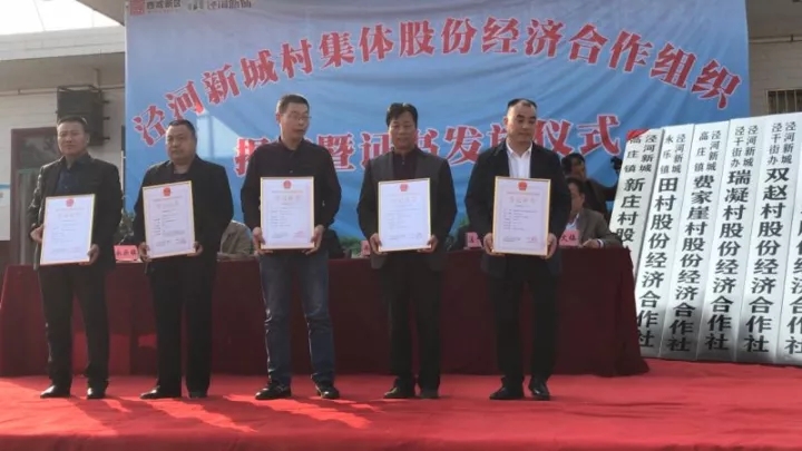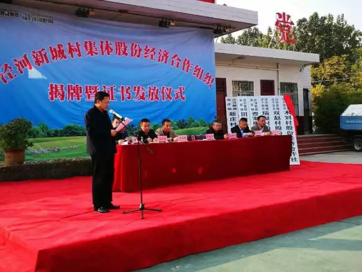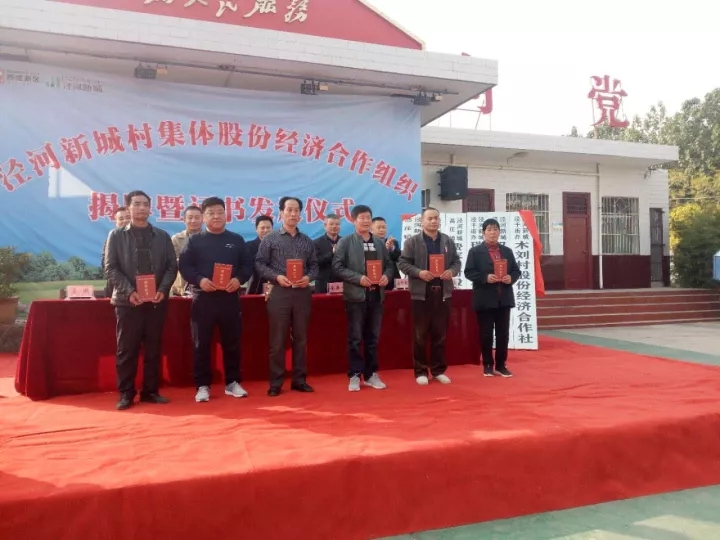 会上,泾河新城党委委员米海湖、农林水局局长南康宁共同为新成立的六个村股份经济合作组织揭牌,并为新成立的股份经济合作社和部分股民代表颁发证书,产改办王美玲同志汇报了泾河新城产改工作开展情况,瑞凝村股份经济合作社董事长高宏章做了表态发言。