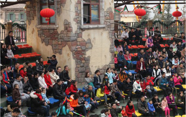 财神送福、猴年红包整点派送,“奔跑吧兄弟”闯关赛、环球大马戏、森林童话剧吸引了众多游客参与其中。日均2万游客,在这里欢乐嗨翻天。