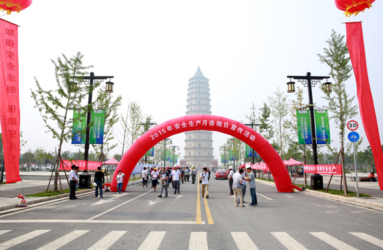 活动现场,由泾河新城规划建设环保局、泾阳县安监局、泾阳县崇文安监站、泾阳县永乐安监站、泾阳县天然气公司、中建院机械分院中心实验室6家单位组成的咨询宣传组,在崇文塔景区设立了专门的咨询宣传台,为前来咨询的人们提供现场讲解,并就相关安全生产政策法规进行重点解读。同时,现场还设有安全生产月活动展板,为前来参观的人们展示了安全生产的相关内容。此外,现场还播放了安全事故警示片,以事故警示震撼心灵,进一步使安全文化深入人心。