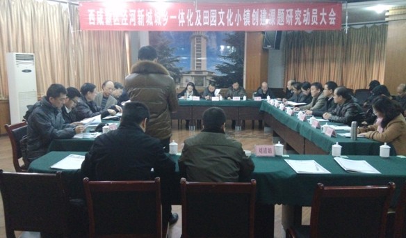 12月20日,西咸新区泾河新城城乡一体化及田园文化小镇创建课题研究工作动员大会在泾阳县宾馆会议室隆重召开,泾河新城党委委员、管委会副主任陈建权,泾阳县副县长蒋彬凤、泾河新城开发建设(集团)公司副总经理米海湖、泾华投资公司董事长高继升出席会议,省决策咨询委办公室主任郭卫东、省决策咨询委财经组副组长卓然、省政府参事、生物技术专家翟文俊,省“三农”问题研究中心主任杨培英等课题组成员,以及项目策划单位代表、无形改造中介公司负责同志、花李村相关村干部等参加了会议。本次会议的顺利召开,标志着泾河新城城乡一体化及田园文化小镇创建课题研究工作全面启动。