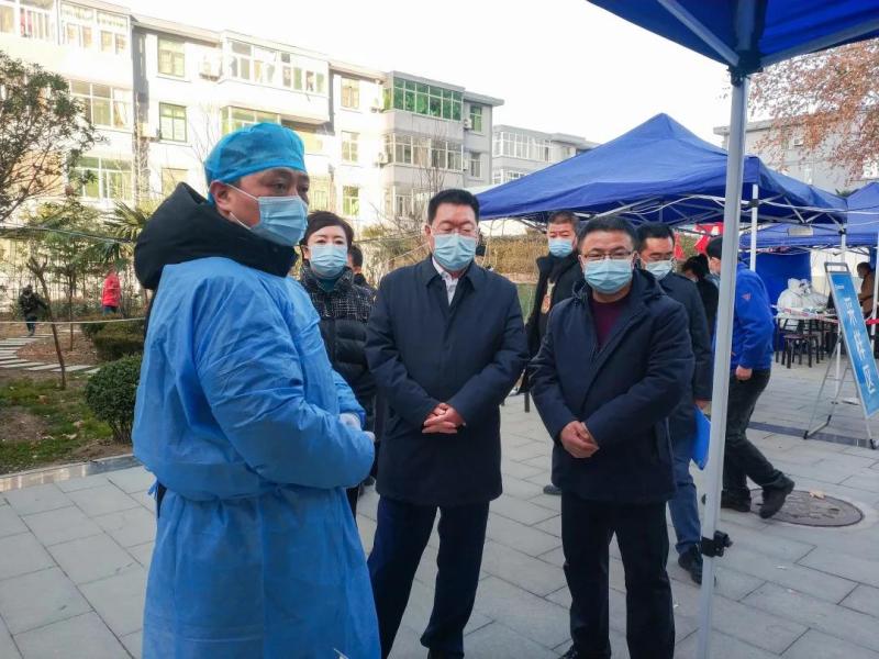 “核酸检测分批次进行没有?”“还有哪些困难和需要?”在永乐社区采样点,张宏伟同工作人员进行沟通交流,仔细询问核酸采样组织安排及后勤保障情况。他强调,当前疫情防控正处在紧要关头,不能有丝毫疏漏,要严格按照省、市、新区的工作部署,科学合理安排,规范、有序地做好辖区全民核酸检测工作,做到及早发现、精准防控。