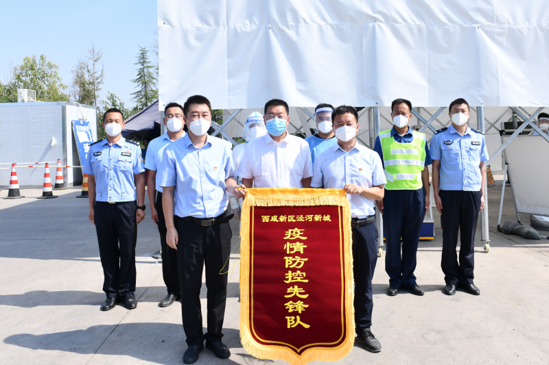 为表彰疫情防控中的先进集体,激励泾河新城全体党员干部不忘初心、牢记使命,一往无前、不懈奋斗,7月1日,西咸新区泾河新城党委授予G65W泾阳高速出口、聂冯高速出口两个交通检查点“疫情防控先锋队”称号。西咸新区党工委委员,泾河新城党委书记、管委会主任张宏伟,泾河新城党委委员、管委会副主任吉炜涛为检查点授旗。