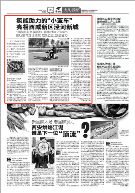 近日,西咸新区泾河新城联合辖区企业正式投放首批“小氢出行”氢能助力“小蓝车”。其作为泾河新城首个创新氢能应用场景,打出了区域第一张绿色出行“氢”名片。