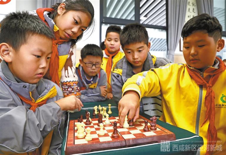 10月14日,泾河新城第三学校五年级一班的学生在课间下国际象棋。本报记者 戴吉坤文/图