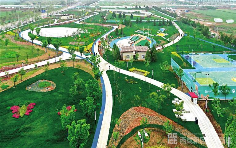 日前,西咸新区泾河新城瀛洲公园建成开放。公园设有健身步道、儿童游乐场、篮球运动场、望景亭等,成为群众休闲健身的好去处。图为瀛洲公园一角。 本报记者 戴吉坤摄