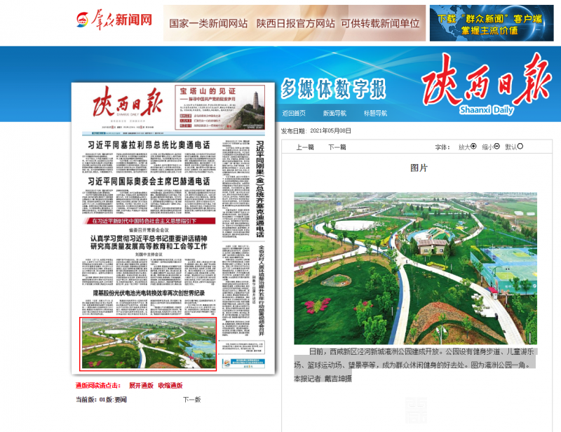 陕西日报:西咸新区泾河新城瀛洲公园建成开放
