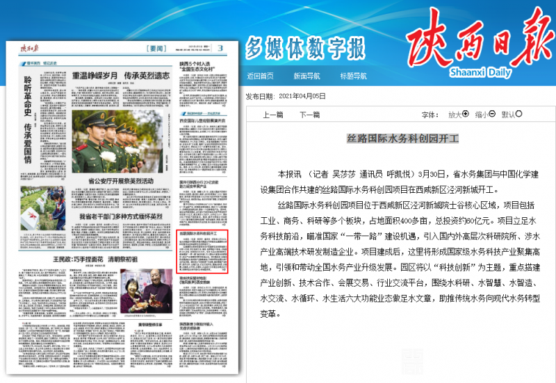 本报讯 (记者 吴莎莎 通讯员 呼凯悦)3月30日,省水务集团与中国化学建设集团合作共建的丝路国际水务科创园项目在西咸新区泾河新城开工。
