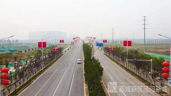 连日来,泾河新城各主要街道上,都能看到用鲜花精心打造的主题花坛,道路两侧的路灯杆上鲜艳的五星红旗,在绿树映衬下更显鲜艳壮丽。