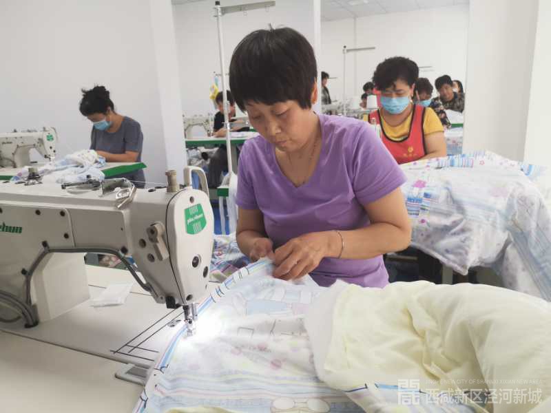 今年3月以来,吉元村可谓发生了大变化,一座新型工厂拔地而起,一台台缝纫机被运送进来,大家天天来“围观”,眼看着泾河新城百年新业吉元村扶贫社区工厂正式落成,招聘启事一经张贴出来,大伙儿就立即响应,不到1个月时间,就有20多名村里的妇女报名,经过7天的全面培训,大家掌握了床上用品的缝纫技术,所有人员正式上岗,村里响起了悦耳的机杼声。