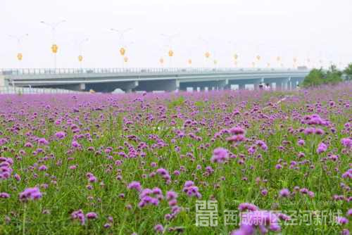 盛夏时节,穿过泾河一路向北,处处都是花红柳绿的蓬勃景象:道路两旁的行道树挺拔苍翠,红的月季、绿的草坪。