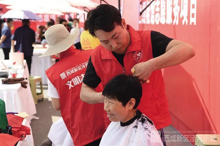 在志愿服务大集活动中,各志愿者团队纷纷亮出手上“绝活”,为群众提供义务理发、采耳、健康义诊、维修家电、爱心产品义卖、免费缝补衣物等便民服务。