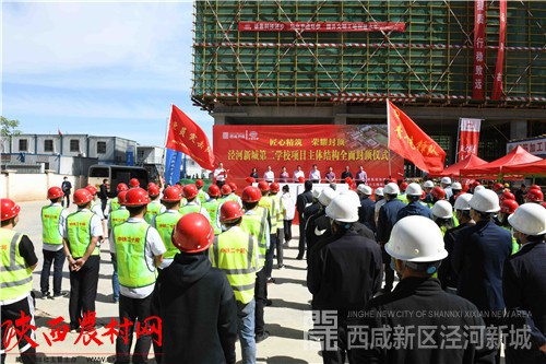 陕西农村网-陕西农村报讯(记者 孙金龙)5月11日上午,随着最后一斗混凝土浇筑完成,西咸新区泾河新城第二学校项目主体结构全面封顶,标志着该项目建设取得关键性进展。