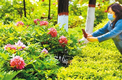 “唯有牡丹真国色,花开时节动京城”,4月7日,随着我市气温逐渐回升,西安牡丹苑里万余株牡丹竞相开放,吸引了不少市民游客前来赏花踏春。 (记者 冯炜 摄)