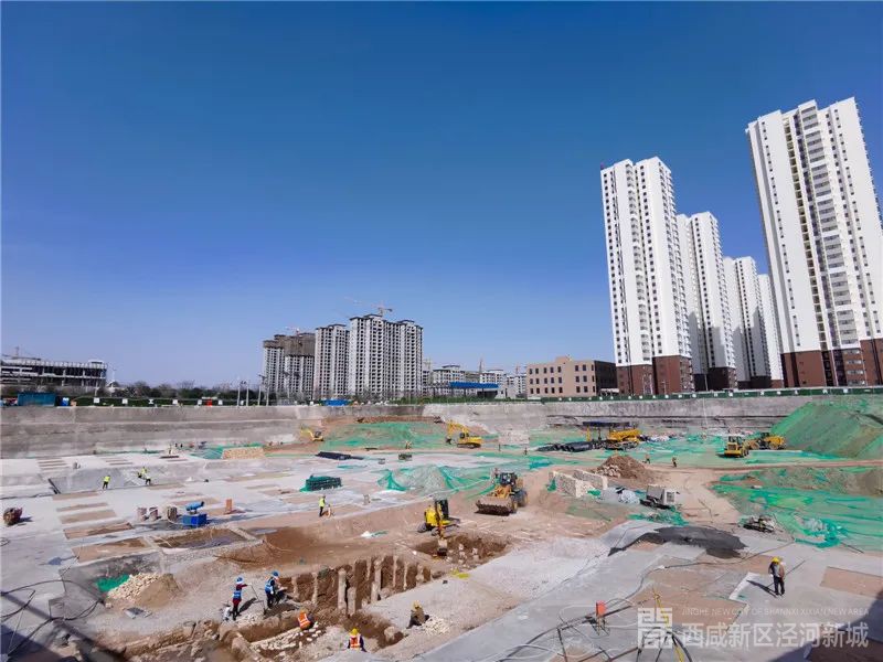 在泾河第二学校施工现场,以做好疫情防控前提,逐步增加施工人员和机械,加快项目建设。