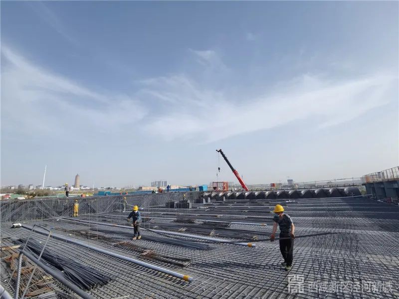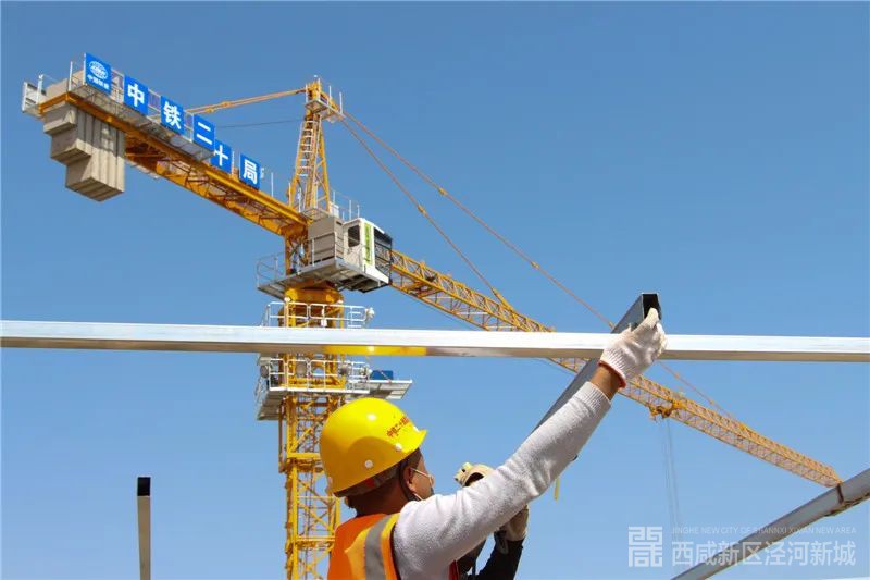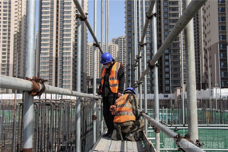 走进泾河新城新能源产业基地项目工地,眼前忙碌的景象让人振奋:塔吊林立,机械轰鸣,绑扎钢筋、浇筑混凝土,工人各司其职,施工现场热火朝天。