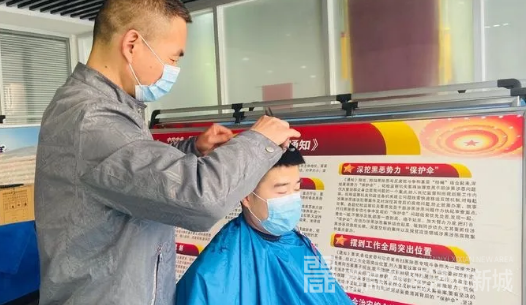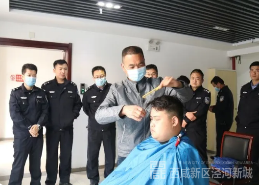 在西咸新区泾河新城的警营里,一家特别的“理发馆”临时开业了,泾河新城永宏发艺两名志愿者理发师携带理发工具和消毒工具来到泾河新城公安分局,为战斗在“抗疫”一线的公安民警辅警送来暖心的义务理发服务。