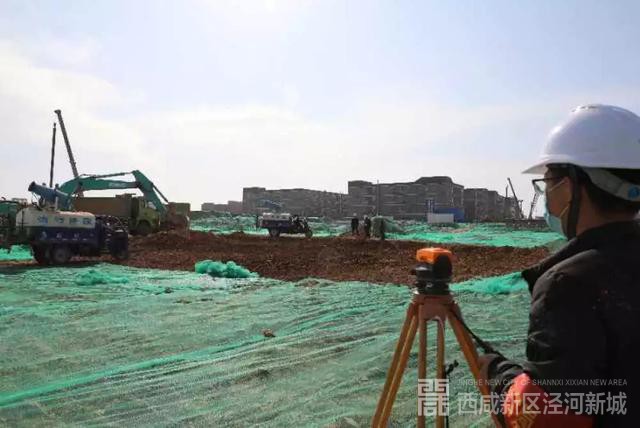 20多公里外,西咸新区空港新城临空产业园二期项目建设工地,同样一派繁忙景象。吊车、挖土车正在施工,工地一旁,工人正在进行测绘。