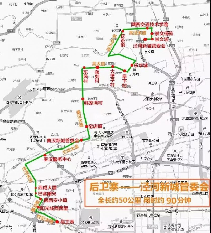 880公交:后卫寨地铁口至泾河新城管委会(世纪大道、乘风路、丰泾大道、金旭路、兰池大道、秦汉大道、高太路、乐华一路、茶马大道、高泾大道、正阳大道、泾河大道);