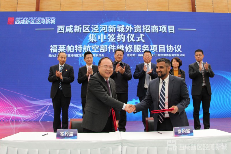 签约仪式上,泾河新城与福莱帕特(厦门)航空部件服务公司、易初明通机电设备(四川)公司、百卡弗中国控股有限公司、西安华合德新材料科技有限公司,分别签订了《福莱帕特航空部件维修服务项目协议》《卡特彼勒(陕西)工程机械再制造中心项目协议》《百卡弗食品加工项目协议》《中德第三代半导体材料联合研究院项目协议》。