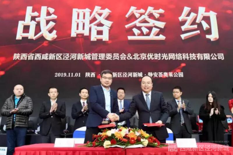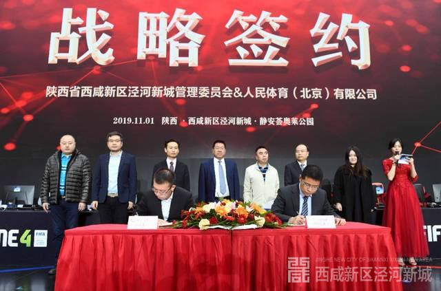 签约仪式上,泾河新城党委委员、管委会副主任刘高波和人民体育事业部总监王嵩,代表双方签署《电子竞技产业长期战略合作协议》;泾河新城党委委员、管委会副主任刘军和北京优时光网络科技有限公司执行董事李晓东,代表双方签署《西北运营中心项目投资协议》。