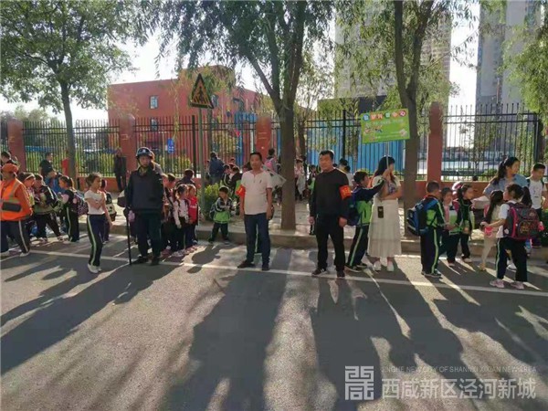 泾河新城坚持结合校园实际,建立健全学生上放学护路队和交通安全巡查护送制度,积极组织辖区村组干部、村(社区)治安中心户长、巡逻队员、人民调解员以及热心于公益事业的群众等参与群防群治工作。“红袖章”平安志愿者队伍,佩戴红袖章,每天加大学校周边的巡逻防控力度和密度,开展校园综合治理工作。泾河新城推行1名民警、4名校园保安、4名群防群治队员的“1+4+4”群防群治模式,构建校内校外全方位安全监督网络,在学生上下学期间上路巡查,迎接和护送学生,严防各种不安全事件发生。