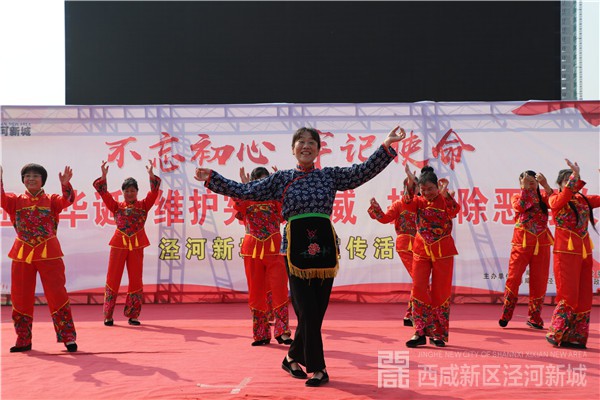 在法治宣传活动现场,来自泾河新城群众文艺团队,精心编排了20余个与群众生产生活息息相关的法治文艺节目,《扫黑除恶当先锋》、《歌唱祖国》、《情牵梁家河》、《厉害了我的国》等节目,颂扬了新中国成立70年来的伟大成就。文艺表演与普及宪法知识、深化扫黑除恶宣传同时开展,吸引了1000余名群众驻足观看。