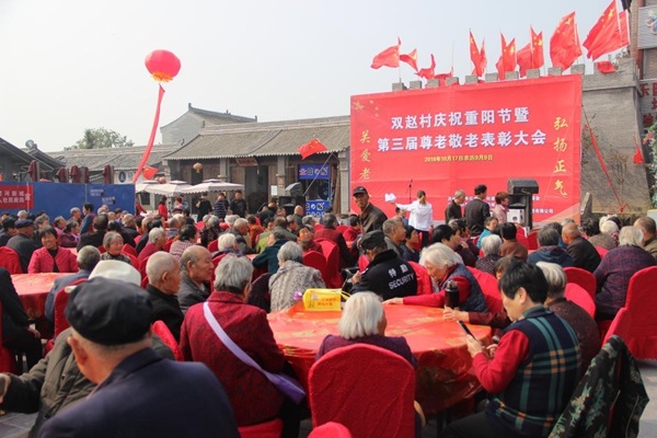 10月17日上午,泾河新城人社民政局、双赵村党支部村委会、茯茶镇集团共同举办了“庆重阳暨第三届尊老敬老表彰大会”,对双赵村评选出的好媳妇、好公婆、好孝子,给予了隆重表彰。