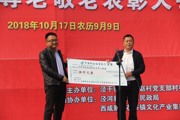 茯茶镇集团及泾河新城相关部门纷纷了爱心捐款。茯茶镇集团常务副总杨磊代表爱心捐赠企业及部门进行发言,他表示,尊老敬老是中华民族的传统美德,关心老龄事业的发展,是每个有社会责任感的爱心企业义不容辞的义务。茯茶镇集团作为茯茶镇项目的开发建设者,始终坚持以人为本的宗旨,加快推进城乡统筹工作,使双赵村及周边村民能够充分融入到茯茶镇的发展过程中,共享发展成果。茯茶镇集团在快速发展的同时,始终不忘回报社会、奉献社会,承担企业相应的社会责任和义务,尤其是在关爱老人、关心社会弱势群体等公益事业方面,不断努力。希望通过敬老爱老活动,唤起更多的爱心企业和人士投身关心社会弱势群体事业的热情,在全社会形成“尊老、敬老、爱老、助老”的浓厚氛围,推进社会和谐前行!