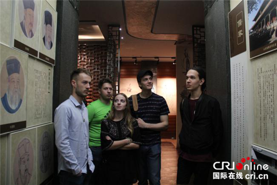 丝路青年们参观西咸新区泾河新城崇文塔景区国学馆(摄影 罗赟鹏)