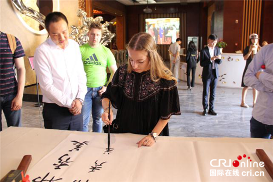 丝路青年体验笔书汉字(摄影 罗赟鹏)